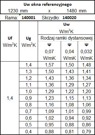 | Współczynnik przenikania ciepła: | Uf=1,3 - 1,4W/m2K |
